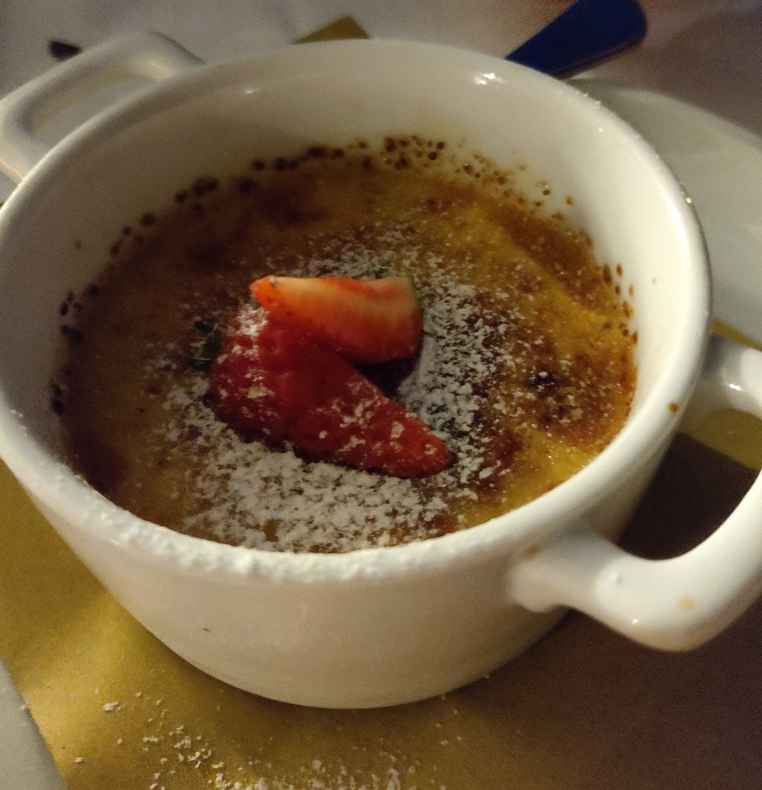 קינוח. לקטנה קרם ברולה עם נגיעות לימון ומלמעלה תותים. הברולה היה מצויין והלימון באמת היה בנגיעות מאד מדוייקות והוסיף בול בלי להרוס. מעניין אם בחורף מחליפים את הלימון בקלמנטינה. בכל זאת איזושהי הצדקה לשם של המסעדה.