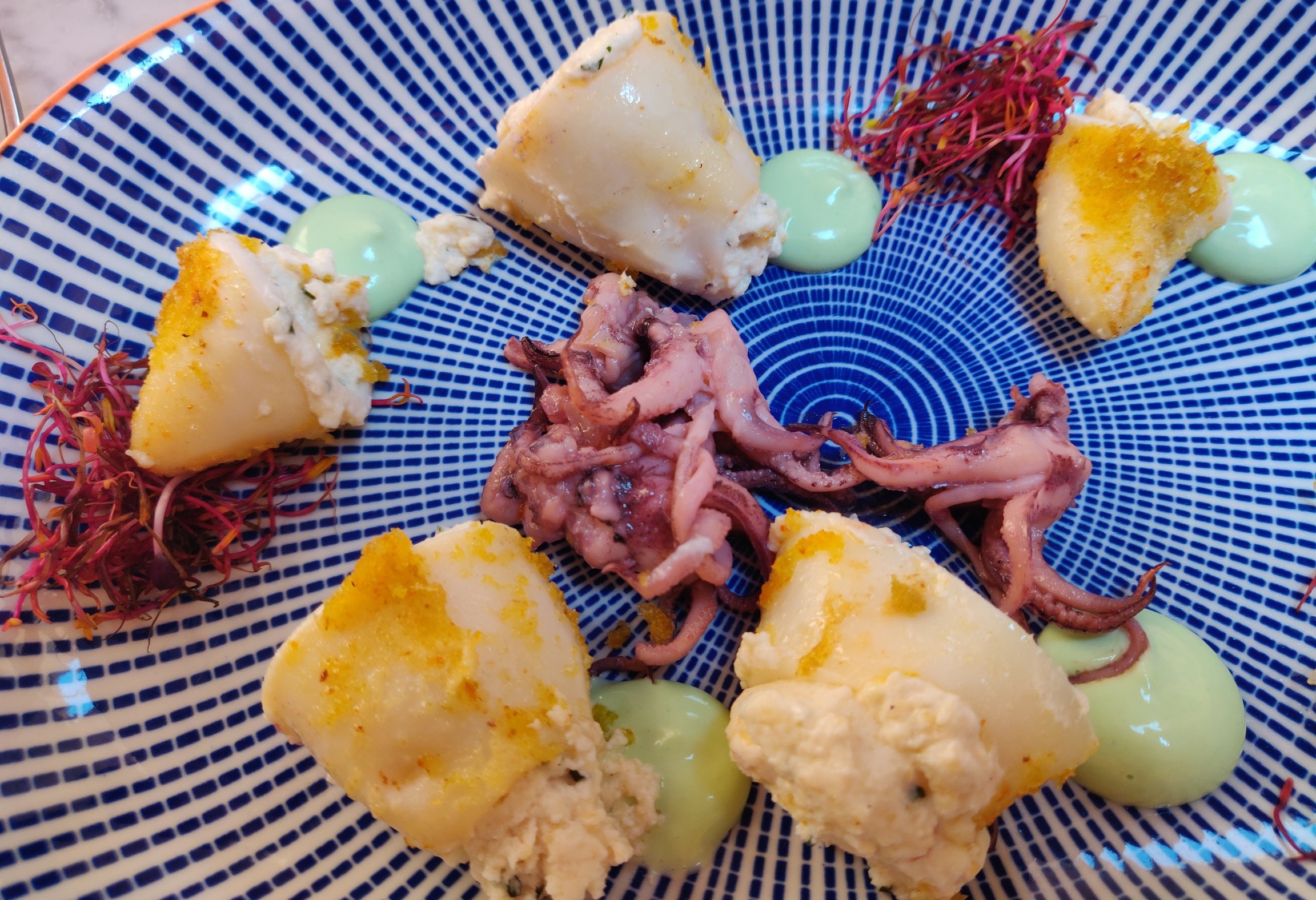 האחת - קלמרי ממולא בריקוטה ושברי אגוזים ובצד מיונז וואסאבי. גם המנה הזו נפלה על אנמיות. חומר גלם זה חשוב, אבל תבלינים זה לא פחות חשוב. ריקוטה לא תתן טעם מעצמה והאגוזים נתנו יותר מרקם מטעם. מנה שנשארה על מסלול ההמראה.