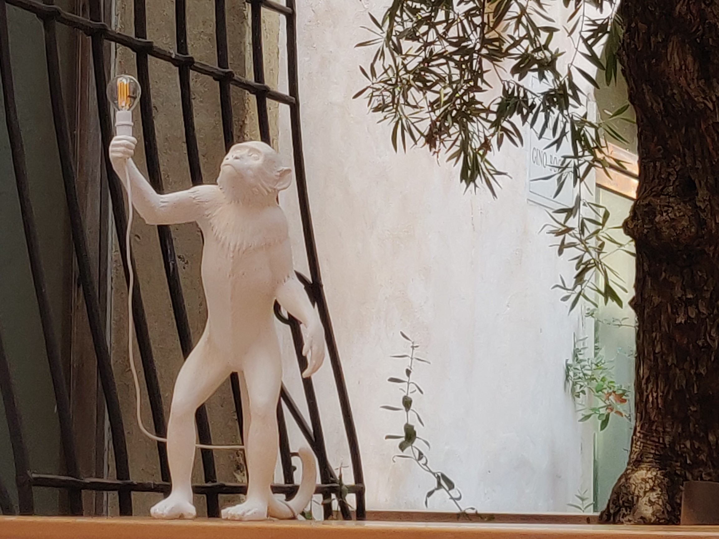 הישיבה בחצר, בין בנייני אבן. נעים אבל קצת חם. כנראה שבחיפוש אחר חמרי גלם לא הספיקו לעצור רגע כדי לקנות מאוורר. מדי פעם היתה רוח שהצילה את המצב אבל לא פלא שהאישה החליפה את היין המסורתי בבירה צוננת.