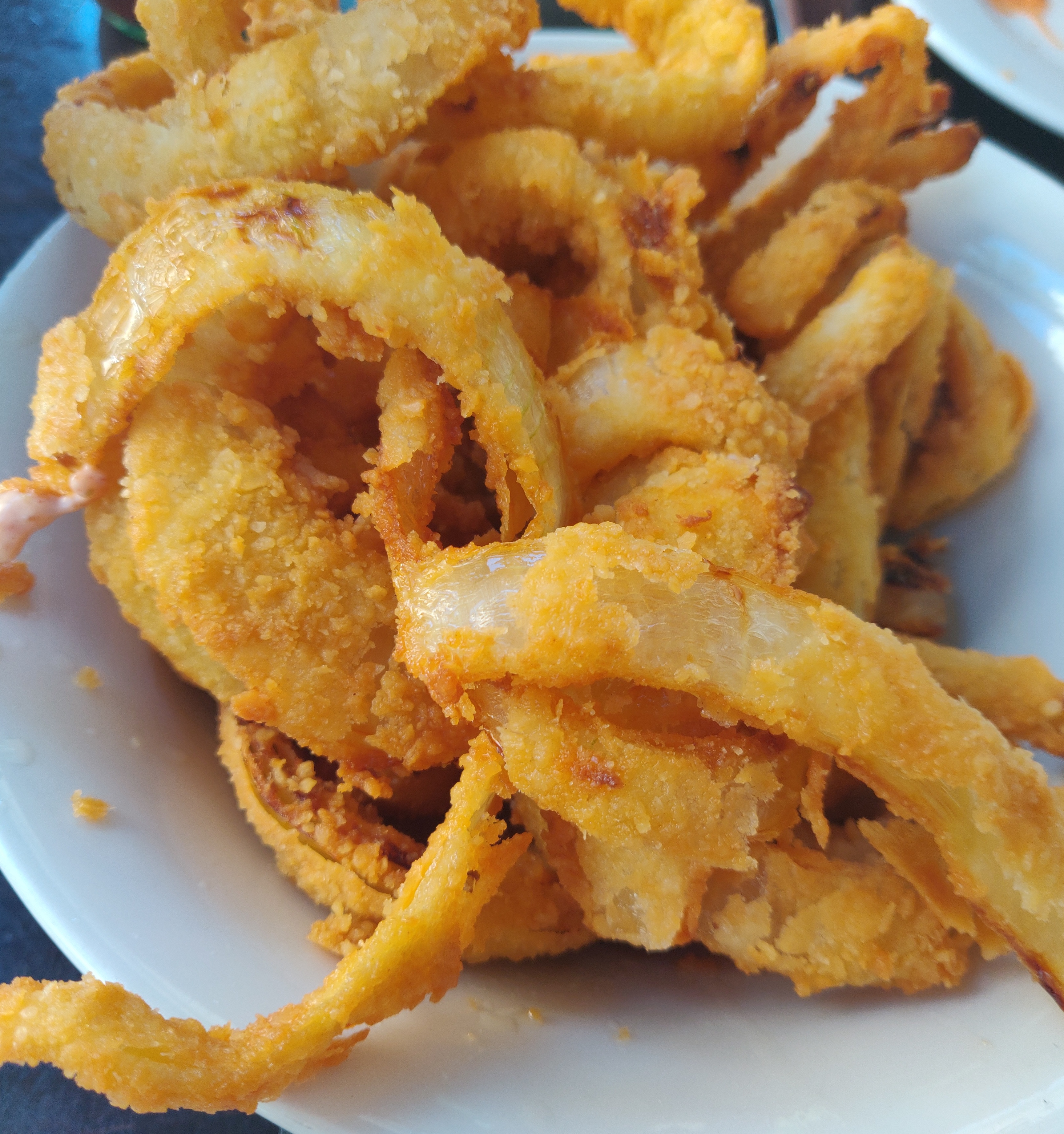 האישה בחרה ב"אלוף בצלות" שהיה הפחות מוצלח מהשלושה. בצל מקורמל, טבעות בצל ובצל כבוש היה קצת too much בצל לטעמי, במיוחד טבעות הבצל שקצת השתלטו על המרקם. את טבעות הבצל ביקשנו גם כתוספת. הם היו בסדר גמור. לא סבלו משמנוניות יתר, כמו בהרבה מקומות אחרים, והציפוי דבק בהן היטב. רוטב שהוגש איתם הוסיף מאד אך לא צולם.