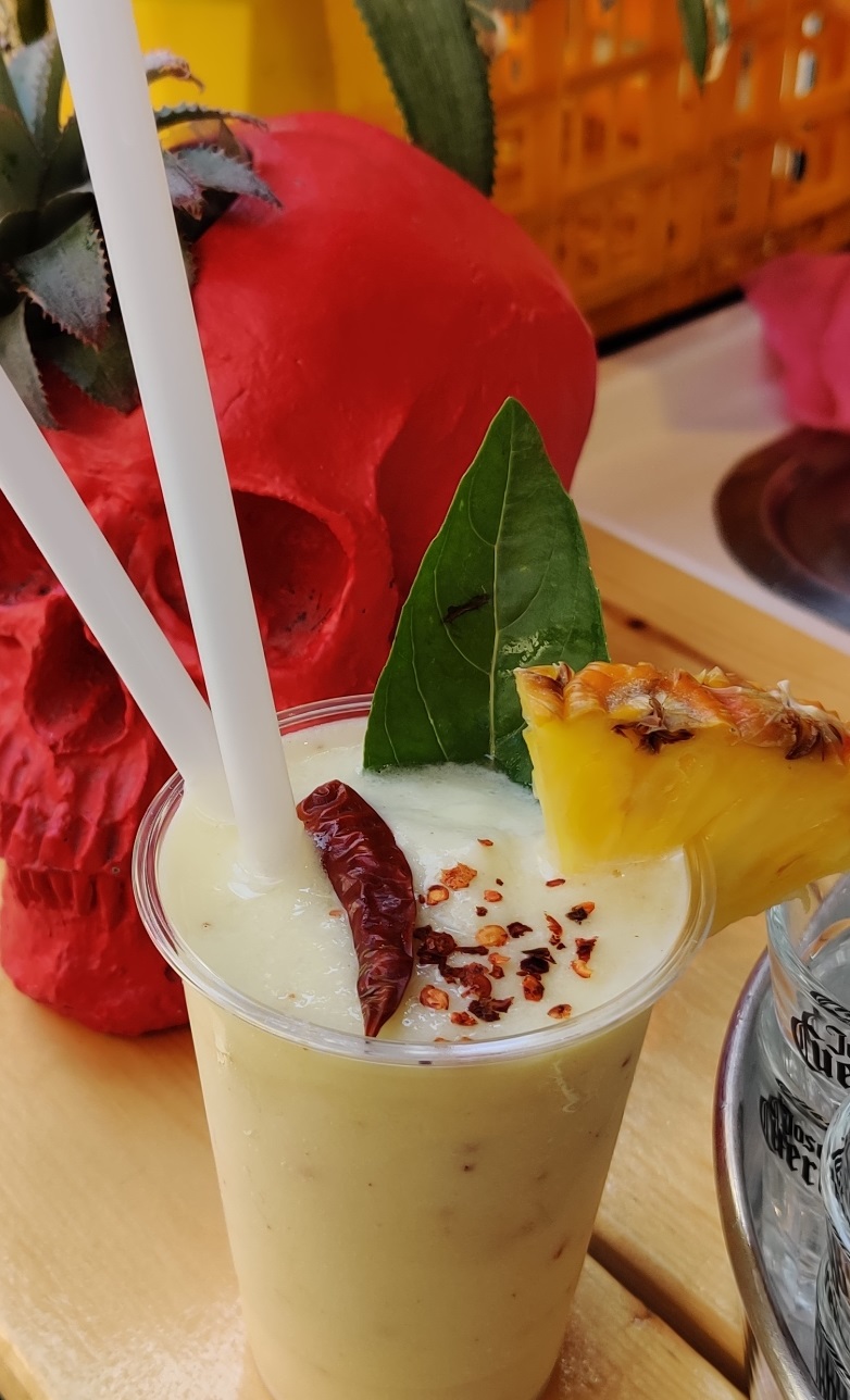 ועוד רגע לפני האוכל - בבוקר עשינו סיבוב בשוק הכרמל ונתקלנו שם בדוכן מרגריטות. 35 שקל לכוס גדולה. מבין הטעמים שהוצעו שם לקחנו אננס-צ'ילי. הצ'ילי היה בול במידה ועשה עבודה טובה בלשבור את המונוטוניות של האננס. אופציה נחמדה מאד לשבור את הקרח תרתי משמע ביום חם