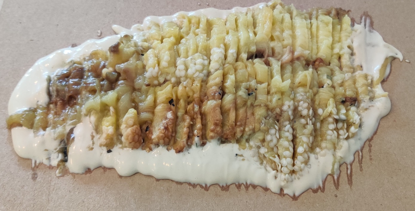 עד כמה שאני זוכר זו פעם ראשונה שאני נתקל בחומר הגלם הזה כך שלא היה לי ממש מושג למה לצפות מהמנה והיות ולא הזמנו אותה מלכתחילה אלא המלצר הביא אותה מיוזמתו אז גם לא ממש התעמקנו בתפריט וגם ככה התפריט אצל אייל שני די אבסטרקטי כך שמעבר לכך שהמנה לא היתה מוצלחת כנראה שאת השאלות יש להפנות לאייל שני