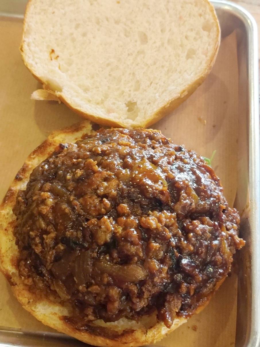 הבטן שלי העדיפה משהו לא מטוגן אז ניסיתי את הסלופי ג'ו שלהם. הייתי די בהלם שהם מגישים עם הסלופי ג'ו את אותן התוספות שמגישים עם ההמבורגר (עגבניה, חסה, וכו'). are you nuts??!?!? מי אוכל סלופי ג'ו עם חסה?!?!!? אז העפתי את הכל הצידה והשארתי רק את הסלופי עצמו, עם שילוב טוב של ברביקיו עם טעם מעושן של הבשר. מצד שני יש לציין שדוקא אצלי הלחמניה כן החזיקה מעמד... אז אני באמת לא יודע מה קרה אצל האישה.