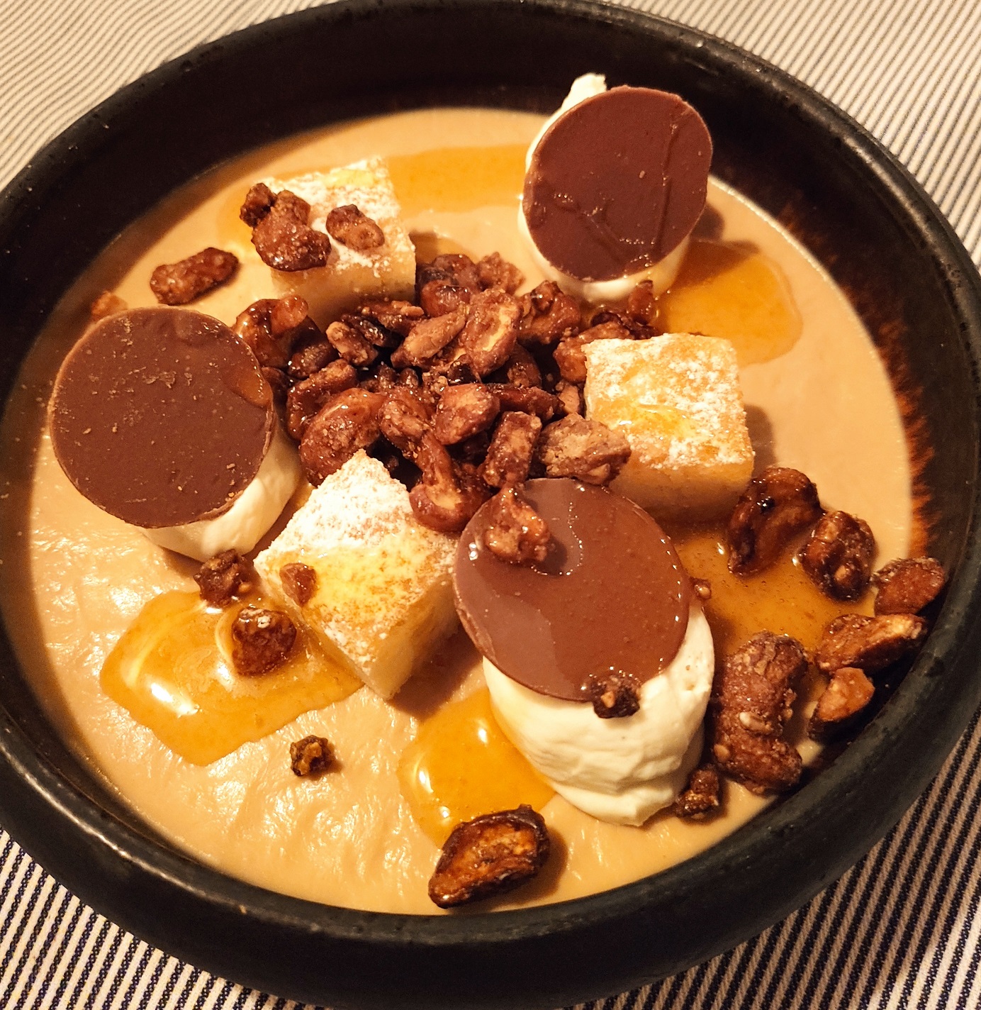 אחרי שלושה ביסים מיצית את הנתח. הבנת את הפרנציפ. מכאן והלאה זה לא ממריא לשום מקום חדש. על אחת כמה וכמה אם אין איזה רוטב שישדרג את ההנאה. בגילי המתקדם אני מעדיף להוציא סכום כזה דווקא על ״ארוחה של דוגמיות״ שכוללת כמה מנות יותר קטנות, יותר מגוונות. אם גם מבקשים את מקבץ המנות אחת אחת, זה מאפשר לבנות ארוחה בקצב יותר איטי ורגוע. כאן אחרי חצי שעה כבר היינו עם הקינוח.