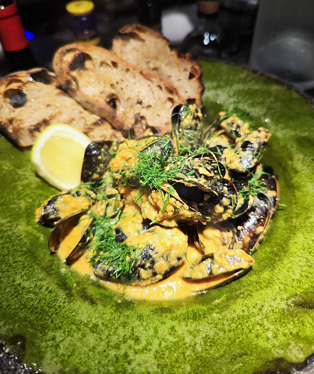 אי אפשר לבקר אצל רימה (שאגב לא היתה נוכחת, אבל לפי המלצר זה היוצא דופן והיא בדרך כלל כן מגיעה) בלי רוטב הרימסקו של רימה. פלפלים שקדים שום ושמן זית. נשמע קצת כמו שם של תכנית טלביזיה אבל מדובר ברוטב שלא ברור למה היא לא מוכרת בצנצנות. באחד הביקורים הקודמים הרוטב עטף תמנון אבל עם המולים זה עובד הרבה יותר טוב. המנה מוגשת עם קרוסטיני ולא סתם היא נחשבת למנת דגל פה (79).