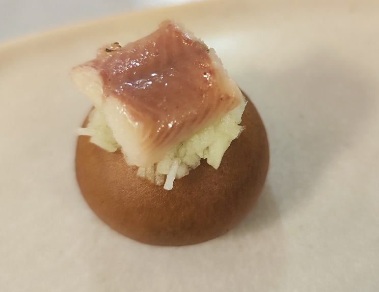 הביס הראשון קונכית ארטישוק וביצי דגים. וואו של ביס. בדיעבד אחד הביסים שהכי אהבתי בארוחה.